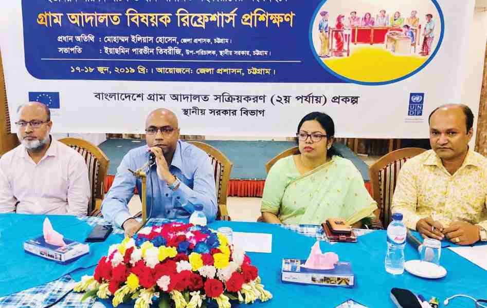 গ্রাম আদালত সক্রিয়করণ প্রকল্পের উদ্যোগে চট্টগ্রামে দুই দিনব্যাপী রিফ্রেশার্স প্রশিক্ষণ কর্মশালা গতকাল মঙ্গলবার দুপুরে সম্পন্ন হয়েছে। নগরীর একটি হোটেলে আয়োজিত এ কর্মশালায় প্রধান অতিথি ছিলেন চট্টগ্রামের জেলা প্রশাসক মোহাম্মদ ইলিয়াস হোসেন। স্থানীয় পর্যায়ে দ্রুত ও সহজে বিরোধ নিষ্পত্তির লক্ষ্যে ইউনিয়ন পরিষদ সচিব ও গ্রাম আদালত সহকারীদের দক্ষতা বৃদ্ধির উদ্দেশ্যে এই প্রশিক্ষণ কর্মশালার আয়োজন করা হয়। অনুষ্ঠানে সভাপতিত্ব করেন স্থানীয় সরকার চট্টগ্রাম কার্যালয়ের উপ-পরিচালক ইয়াছমিন পারভীন তিবরীতি।