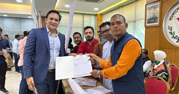 শনিবার (১৮ নভেম্বর) দুপুর ১২টার দিকে বঙ্গবন্ধু এ্যাভিনিউর আওয়ামী লীগের কেন্দ্রীয় কার্যালয় থেকে দলীয় নেতাকর্মীদের সাথে নিয়ে আওয়ামী লীগের প্রেসিডিয়াম সদস্য মোশাররফ হোসেনের মেঝ ছেলে আনুষ্ঠানিকভাবে মনোনয়নপত্র সংগ্রহ করেন।