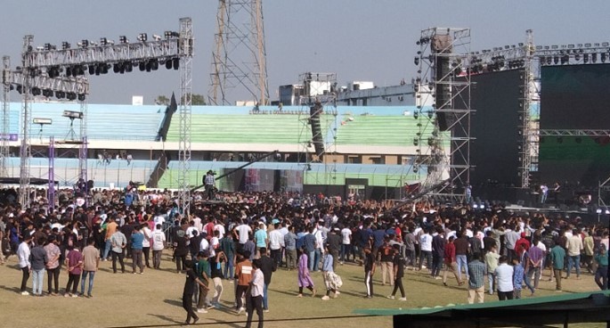 জাতির পিতা বঙ্গবন্ধু শেখ মুজিবুর রহমানের ঐতিহাসিক ৭ মার্চের ভাষণ স্মরণে বন্দর নগরী চট্টগ্রামে চলছে জয় বাংলা কনসার্ট। শুরুতেই গান পরিবেশনা করে দর্শক মাতিয়েছে জনপ্রিয় ব্যান্ড দলের শিল্পীরা ।বৃহস্পতিবার (৭ মার্চ) চট্টগ্রামের এম এ আজিজ স্টেডিয়ামে বেলা ৩টায় এই কনসার্ট শুরু হয়। এর আগে দুপুর থেকে কনসার্ট দেখতে ভিড় করেন তরুণ প্রজন্ম। কনসার্টে গানে গানে তারুণ্যের বাঁধভাঙা উল্লাসে কাপঁছে এম এ আজিজ স্টেডিয়ামের আশপাশ।