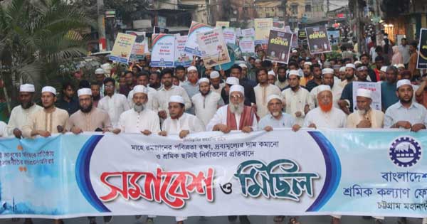 শনিবার বাংলাদেশ শ্রমিক কল্যাণ ফেডারেশন চট্টগ্রাম মহানগর আয়োজিত মাহে রমজানের পবিত্রতা রক্ষা ও নিত্যপ্রয়োজনীয় পণ্যের দাম কমানোর দাবিতে মিছিল ও সমাবেশে প্রধান অতিথির বক্তব্যে তিনি এসব কথা বলেন।