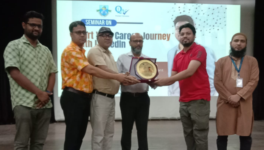 সেমিনারে আইকিউএসির অতিরিক্ত পরিচালক (ইটিএল) প্রফেসর এম. মঈনুল হক বলেন, লিঙ্কডইন এক স্যোশাল মিডিয়া। কিন্তু সেটা প্রফেশনালদের জন্য। তুমি যদি একটি ভালো প্রোফাইল লিঙ্কডইনে তৈরি করতে পারো, তবে তোমাকে চাকরিদাতা প্রতিষ্ঠানগুলো হায়ার করতে পারে।