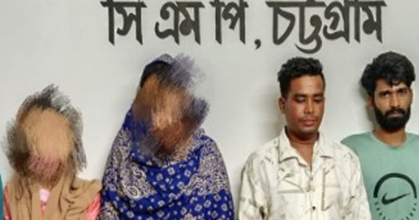 গ্রেপ্তারকৃতরা হলো-রাঙামাটি জেলার কাপ্তাই থানার নতুন বাজার এলাকার বাবুল দাশের ছেলে জিন্টু দাস (৩১), রাউজান উপজেলার নোয়াপাড়ার আহামদুল হকের ছেলে মো. রায়হান (২৬), পাহাড়তলী অলঙ্কার বাসনতি এলাকার তিস্তাই ইসলাম আসমা (২৪) ও চান্দগাঁও মোহরা এলাকার কাজিরহাট এলাকার ছেনোয়ারা বেগম (৩৫)।