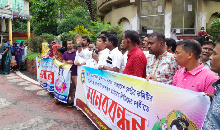 সিলেকশন নয় নির্বাচনের মাধ্যমে জন্মাষ্টমী উদযাপন পরিষদের কেন্দ্রীয় কমিটি গঠনের দাবিতে সাধারণ সনাতনী সমাজের ব্যানারে মানববন্ধন করেছে । মঙ্গলবার (৩ জুন) নগরীর চেরাগী পাহাড় মোড়ে এই মানববন্ধন কর্মসূচি পালন করে তারা।