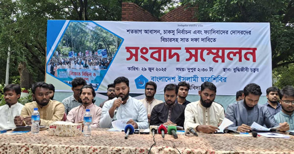 রবিবার (২৯ জুন) দুপুর আড়াইটাই বিশ্ববিদ্যালয়ের বুদ্ধিজীবী চত্বরে এক সংবাদ সম্মেলনে বুকলেট প্রকাশ করা হয়। সংবাদ সম্মেলনে উপস্থিত ছিলেন ছাত্রশিবির বিশ্ববিদ্যালয় শাখার সেক্রেটারি মুহাম্মদ আলী, অর্থ সম্পাদক মোহাম্মদ মুজাহিদ, অফিস সম্পাদক হাবিবুল্লাহ খালেদ, প্রচার সম্পাদক ইসহাক ভূঁইয়াসহ ছাত্রশিবিরের বিভিন্ন শাখার নেতাকর্মীরা।