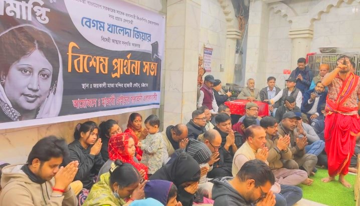 সাবেক প্রধানমন্ত্রী বেগম খালেদা জিয়ার আত্মার শান্তি কামনায় চট্টগ্রামে প্রার্থনার আয়োজন করেছে সনাতনী সম্প্রদায় ।আজ শুক্রবার (২ জানুয়ারি) সন্ধ্যা ৭ টায় হাজারীগলি শ্রী শ্রী জয়কালী মন্দির প্রাঙ্গণে হাজারী লেন সনাতনী সম্প্রদায়ের উদ্যোগে এই প্রার্থনা সভা অনুষ্ঠিত হয়।