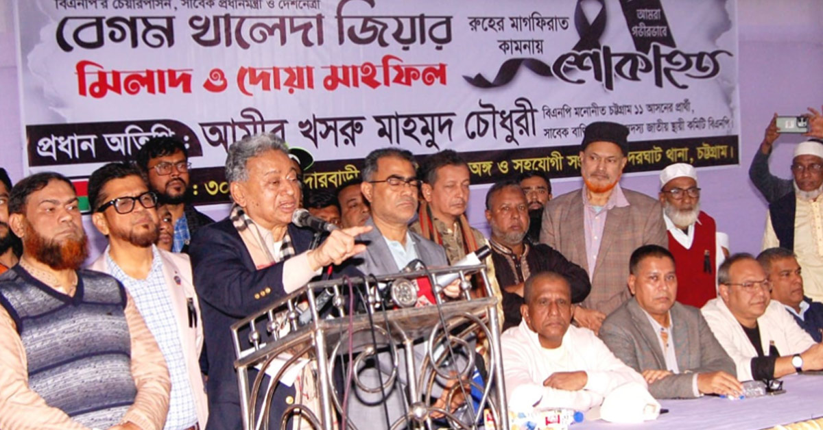 বৃহস্পতিবার (৮ জানুয়ারি) বিকেলে চট্টগ্রাম নগরীর পূর্ব মাদারবাড়ি ওয়ার্ড বিএনপি ও অঙ্গসংগঠনের উদ্যোগে সাবেক প্রধানমন্ত্রী প্রয়াত বেগম খালেদা জিয়ার আত্মার শান্তি কামনায় মিলাদ ও দোয়া মাহফিলে তিনি এ কথা বলেন।