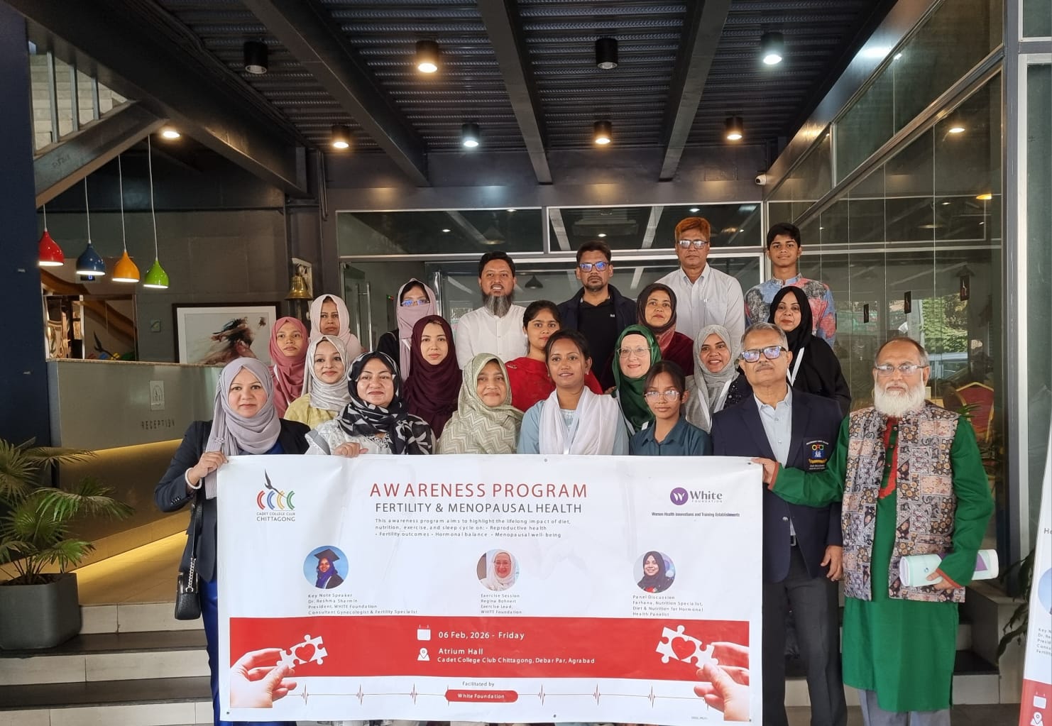 শহরের অন্যতম অভিজাত ক্লাব- ক্যাডেট কলেজ ক্লাব চট্টগ্রাম লিমিটেডের উদ্যোগে ‘ফার্টিলিটি এন্ড মেনোপজাল হেলথ’ বিষয়ক সচেতনতামূলক অনুষ্ঠানের আয়োজন করা হয়েছে। শুক্রবার (৬ ফেব্রুয়ারি) সকালে নগরীর আগ্রাবাদ ডেবারপাড় এলাকায় ক্লাব অডিটোরিয়ামে এই অনুষ্ঠানের আয়োজন করা হয়।