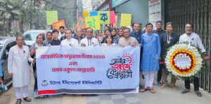 একুশের প্রথম প্রহরে বিশ্ববিদ্যালয় ক্যাম্পাস প্রাঙ্গণে নির্মিত শহীদ মিনারে পুষ্পস্তবক অর্পণ, দেয়ালিকা, আবৃত্তি ও সাংস্কৃতিক পরিবেশনার মাধ্যমে ভাষা শহীদদের প্রতি শ্রদ্ধা নিবেদন করা হয়। এ সময় শিক্ষক, শিক্ষার্থী ও কর্মকর্তা-কর্মচারীবৃন্দ ভাষা শহীদদের আত্মত্যাগ গভীরভাবে স্মরণ করেন।
