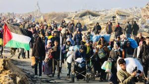 গাজা ভূখণ্ডের দক্ষিণাঞ্চল থেকে গাজা সিটিতে নেতজারিম করিডোর দিয়ে প্রবেশ করছে বাস্তুচ্যুত গাজাবাসী।
