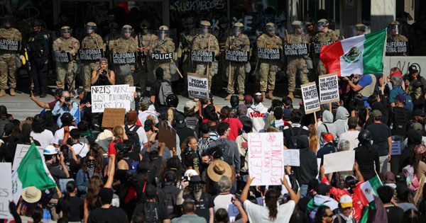 ট্রাম্প প্রশাসনের কর্মকর্তারা এই প্রতিবাদকে বেআইনি বলে চিহ্নিত করেছেন। তারা বিক্ষোভ ব্যাপকভাবে ছড়িয়ে পড়া অনুমোদন করার জন্য অঙ্গরাজ্যটির ও লস অ্যাঞ্জেলেসের স্থানীয় ডেমোক্র্যাটদের দায়ী করেছেন। এসব ডেমোক্র্যাটরা শহরগুলোতে অবৈধ অভিবাসীদের অভয়ারণ্য গড়ে তুলে তাদের সুরক্ষা দিচ্ছেন বলে অভিযোগ ট্রাম্পের কর্মকর্তাদের।