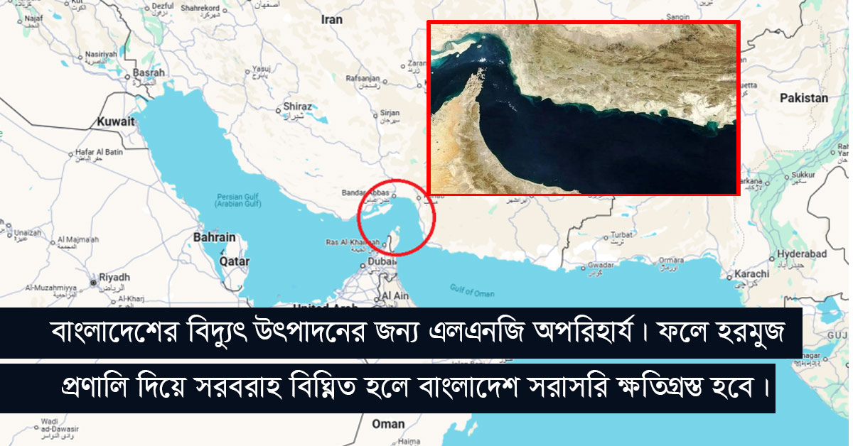 বাংলাদেশের বিদ্যুৎ উৎপাদনের জন্য এলএনজি অপরিহার্য। ফলে হরমুজ প্রণালি দিয়ে সরবরাহ বিঘ্নিত হলে বাংলাদেশ সরাসরি ক্ষতিগ্রস্ত হবে।