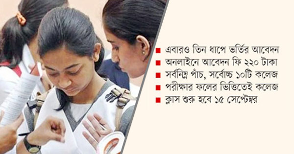 কোন ধাপের আবেদন-ফল প্রকাশ কবে: একাদশ শ্রেণিতে ভর্তিতে প্রথম ধাপে আবেদন নেওয়া হবে ৩০ জুলাই থেকে ১১ আগস্ট পর্যন্ত। ১২ আগস্ট আবেদন যাচাই, বাছাই ও আপত্তি নিষ্পত্তি করা হবে। ১৩ ও ১৪ আগস্ট শুধুমাত্র খাতা চ্যালেঞ্জে ফলাফল পরিবর্তন হওয়া শিক্ষার্থীরা আবেদন করার সুযোগ পাবেন। প্রথম ধাপে আবেদনকারীদের ১৫ আগস্ট কলেজ পছন্দক্রম পরিবর্তনের সময় দেওয়া হবে। এরপর ২০ আগস্ট রাত ৮টায় ফল প্রকাশ করা হবে। ২২ আগস্ট প্রথম ধাপে নির্বাচিত শিক্ষার্থীদের নিশ্চয়নের সুযোগ দেওয়া হবে। যারা প্রথম ধাপে নির্বাচিত হয়েও নিশ্চায়ন করবেন না তাদের দ্বিতীয় ধাপে পুনরায় ফি দিয়ে আবেদন করতে হবে। ২৮ আগস্ট শিক্ষার্থীদের কলেজ পছন্দক্রম অনুযায়ী প্রথম মাইগ্রেশনের ফল প্রকাশ করা হবে। একই দিনে (২৮ আগস্ট) রাত ৮টায় দ্বিতীয় ধাপের আবেদনের ফল প্রকাশ করা হবে। ২৯ ও ৩০ আগস্ট দ্বিতীয় ধাপে নির্বাচিতদের নিশ্চায়ন করতে হবে। ৩১ আগস্ট থেকে ১ সেপ্টেম্বর পর্যন্ত তৃতীয় ধাপে আবেদন নেওয়া হবে। ৩ সেপ্টেম্বর দ্বিতীয় মাইগ্রেশনের ফল প্রকাশ করা হবে। একই দিন (৩ সেপ্টেম্বর) রাতে তৃতীয় ধাপের ফল প্রকাশ করা হবে। ৪ সেপ্টেম্বর রাত ৮টা পর্যন্ত শিক্ষার্থীরা নিশ্চায়ন করতে পারবেন। এ ধাপেও কোনো শিক্ষার্থী নিশ্চায়ন না করলে তার আবেদন বাতিল বলে গণ্য হবে। ৫ সেপ্টেম্বর সর্বশেষ মাইগ্রেশনের ফল প্রকাশ করা হবে। এরপর তিন ধাপে নির্বাচিতদের চূড়ান্ত ভর্তি প্রক্রিয়া শুরু হবে। ভর্তি চলবে ৭-১৪ সেপ্টেম্বর পর্যন্ত। এর পরের দিন ১৫ সেপ্টেম্বর একাদশ শ্রেণিতে ক্লাস শুরু হবে।