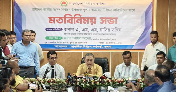 শনিবার (২৬ জুলাই) সকাল ১০টায় খুলনা নির্বাচন কমিশন এবং প্রশাসনের কর্মকর্তাদের সঙ্গে মতবিনিময় সভায় সাংবাদিকদের তিনি এসব কথা বলেন।