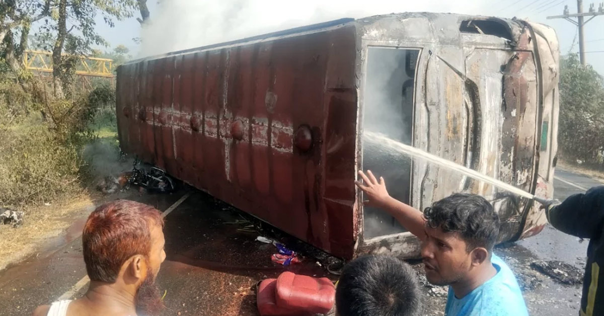 ঢাকা-চট্টগ্রাম মহাসড়কের কুমিল্লা অংশের দাউদকান্দির বাণিয়া পাড়া এলাকায় সিএনজি অটোরিকশা ও মোটরসাইকেলের সঙ্গে সংঘর্ষের পর একটি যাত্রীবাহী বাস উল্টে আগুন ধরে যায়। এ ঘটনায় ঘটনাস্থলেই চারজন নিহত হয়েছেন। আহত হয়েছেন অন্তত ১২ জন।