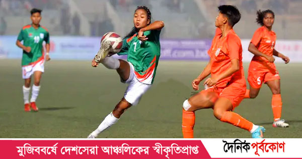 অনূর্ধ্ব-২০ নারী সাফে নিজেদের দ্বিতীয় ম্যাচে ভারতের সঙ্গে গোলশূন্য ড্র করেছে বাংলাদেশ। তাতে দুই দলেরই ফাইনালে খেলার আশা ভালো ভাবেই টিকে রইল। নেপালকে ৩-১ গোলে হারিয়ে আসর শুরু করেছিল বাংলাদেশ। আর ভুটানকে ১২-০ গোলে উড়িয়ে উড়ন্ত সূচনা করেছিল ভারত। দুই ম্যাচ শেষে চার পয়েন্ট করে নিয়ে শীর্ষে ভারত এবং দুইয়ে বাংলাদেশ।