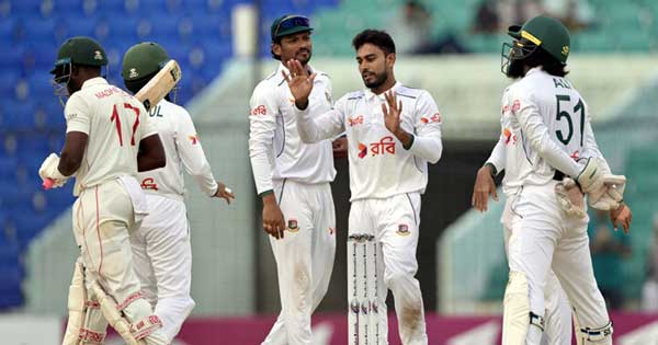 চট্টগ্রাম টেস্টে এর আগে সাদমান ইসলাম ও মেহেদী হাসান মিরাজের সেঞ্চুরিতে প্রথম ইনিংসে ১২৯.২ ওভারে ৪৪৪ রান করে বাংলাদেশ। আর জিম্বাবুয়ে প্রথম ইনিংসে অলআউট হয়েছিল ২২৭ রানে।