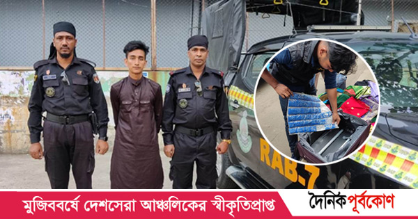 র‌্যাব-৭ এর সিনিয়র সহকারী পরিচালক (মিডিয়া) মো. নুরুল আবছার জানান, শুক্রবার ৪টার দিকে চট্টগ্রাম-কক্সবাজার সড়কের শাহ আমানত এলাকায় তল্লাশির সময় বাস থেকে রাকিবকে গ্রেপ্তার করা হয়। এ সময় তার লাগেজে পাওয়া যায় ১০ হাজার ৯০০টি ইয়াবা। ইয়াবাগুলো পলিব্যাগ দিয়ে মোড়ানো ছিল। তাকে সংশ্লিষ্ট থানায় হস্তান্তর করা হয়েছে।