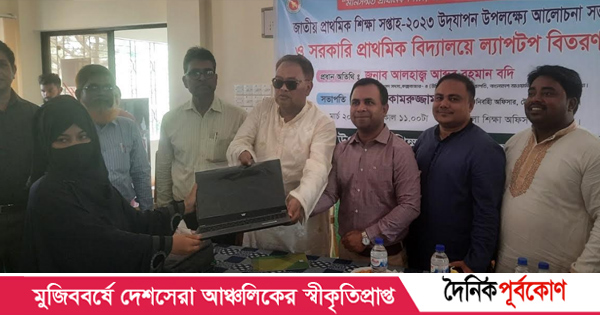 সোমবার (১৩ মার্চ) সকাল ১০টায় এ উপলক্ষ্যে উপজেলা প্রাথমিক শিক্ষা অফিস মিলনায়তনে আলোচনা সভা অনুষ্ঠিত হয়। এ সময় ৫১টি সরকারি প্রাথমিক বিদ্যালয়ের প্রধান শিক্ষকের কাছে ল্যাপটপ বিতরণ করা হয়।
