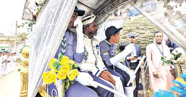 এ যেন রূপকথার কোনো রাজ্যের রাজা। পায়ে জুতো গায়ে শেরওয়ানি মাথায় পাগড়ি পরিধান করে ঘোড়ার গাড়িতে চেপে ঢোল তবলার বাজনায় ঘুরছেন রাজ্যের হাট বাজার। তবে তিনি বাস্তবে রাজা নন, মফস্বল জনপদের একটি শর্তবর্ষী বিদ্যালয়ের দপ্তরি। যার ঘণ্টার আওয়াজে যুগের পর যুগ শিক্ষার্থীরা ক্লাস রুমে ঢুকতেন, ছুটির ঘণ্টায় বের হতেন হাজারো শিক্ষার্থী।