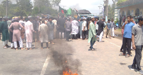 চট্টগ্রাম-কক্সবাজার মহাসড়কে বিক্ষোভ করছেন আহলে সুন্নাত ওয়াল জামা'আত ও ইসলামী ছাত্র সেনা