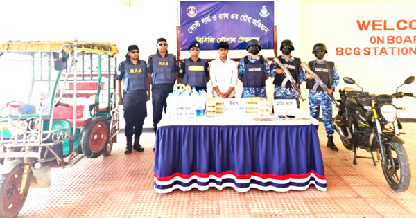 অপরদিকে একই সময় কোস্ট গার্ড আউটপোস্ট বাহারছড়ায় মেরিন ড্রাইভ এলাকায় একটি বিশেষ অভিযান চালিয়ে সন্দেহভাজন ১টি ইজিবাইক তল্লাশী করে সিটের নিচে অভিনব কায়দায় লুকায়িত অবস্থায় ৫০ লিটার দেশীয় মদ ও ইজিবাইকসহ মাদক কারবারি আব্দুল করিমকে (৩২) গ্রেপ্তার করা হয়। অভিযান চলাকালীন মাদক পাচারকারী লাফ দিয়ে পালিয়ে যাওয়ার চেষ্টা করলে পা কেটে যায়। আভিযানিক দল তাকে প্রাথমিক চিকিৎসা দেওয়ার পর উন্নত চিকিৎসার জন্য কক্সবাজার সদর হাসপাতালে প্রেরণ করে। বর্তমানে উক্ত মাদক পাচারকারী চিকিৎসাধীন রয়েছে। জব্দকৃত ইয়াবা, মোটর সাইকেল, ইজিবাইক ও সকল আলামতসহ গ্রেপ্তারকৃত মাদক কারবারিদের বিরুদ্ধে পরবর্তী আইনানুগ ব্যবস্থা গ্রহণের কার্যক্রম প্রক্রিয়াধীন রয়েছে।