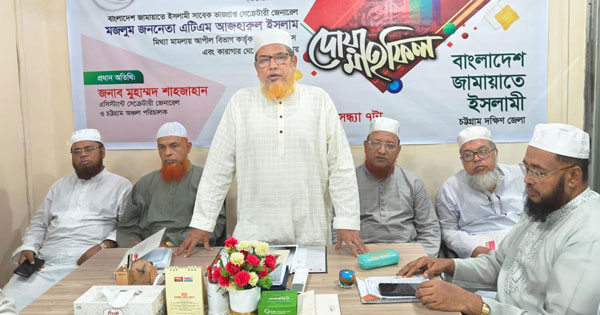 কেন্দ্রীয় মজলিসে শুরা সদস্য ও চট্টগ্রাম দক্ষিণ জেলার আমির আনোয়ারুল আলম চৌধুরীর সভাপতিত্বে এবং সেক্রেটারি অধ্যক্ষ মাওলানা বদরুল হকের সঞ্চালনায় অনুষ্ঠিত দোয়া মাহফিলে আরও উপস্থিত ছিলেন জেলা নায়েবে আমির অধ্যাপক মুহাম্মদ নুরুল্লাহ, জেলা এসিস্ট্যান্ট সেক্রেটারি মুহাম্মদ জাকারিয়া, অধ্যক্ষ মাওলানা জহিরুল ইসলাম, এডভোকেট আবু নাছের, সাংগঠনিক সেক্রেটারি অধ্যাপক মাহমুদুল হাছান, জেলা কর্মপরিষদ সদস্য ড. মাওলানা আবুল আফীফ, মাওলানা কামাল উদ্দীন, নুরুল হক, অধ্যক্ষ মাওলানা ইসমাঈল হক্কানী, মাওলানা আরেফে জামী, ইঞ্জিনিয়ার শহীদুল মোস্তফা, আরিফুর রশীদ প্রমুখ।
