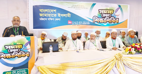 শুক্রবার (৩০ মে) সকাল ৮টায় চট্টগ্রামের বাকলিয়ার সিলভার প্যালেস কমিউনিটি সেন্টারে দক্ষিণ জেলা জামায়াতের উদ্যোগে আয়োজিত সদস্য (রুকন) শিক্ষাশিবিরে প্রধান অতিথির বক্তব্যে তিনি এসব কথা বলেন।
