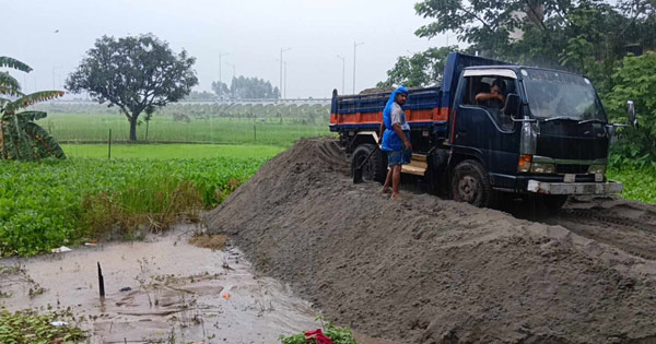 জানা যায়, উপজেলার বৈরাগ ইউনিয়নের মোহাম্মদপুর এলাকার রিজুয়ান মুন্সির হাটের পাশে সরকারি ১ নম্বর খাস খতিয়ানভুক্ত জমির উপর শতবর্ষী একটি পুকুর এক ব্যক্তি দীর্ঘদিন ধরে পুকুরটি বালু দিয়ে ভরাট করে স্থাপনা নির্মাণের চেষ্টা করছে।