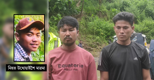 ঘটনাটি ঘটে শনিবার (২৬ জুলাই) দিবাগত রাত ৩টার দিকে। এ ঘটনায় অভিযুক্ত উনুসিং মারমা (২৬) ও হ্লাথোয়াইহ্রী মারমা (২৮) নামের দুইজনকে গ্রেপ্তার করেছে পুলিশ। তারা দুজনেই শীলবান্ধা পাড়ার বাসিন্দা।
