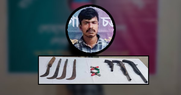 আটক ব্যক্তির দেওয়া তথ্যের ভিত্তিতে একটি পরিত্যক্ত টিনের ঘরে তল্লাশি চালিয়ে উদ্ধার হয় তিনটি একনলা এলজি, আটটি কার্তুজ, চারটি দেশীয় রামদা।