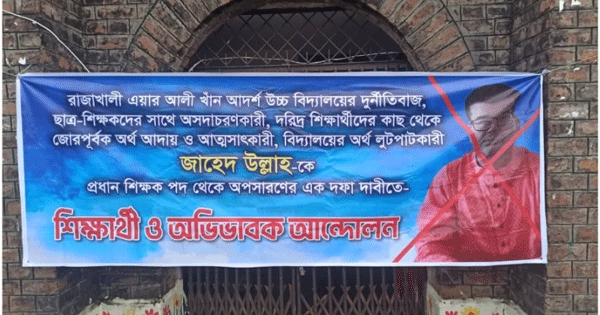 কক্সবাজারের পেকুয়ায় রাজাখালী এয়ার আলী খাঁন আদর্শ উচ্চ বিদ্যালয়ের প্রধান শিক্ষক জাহেদ উল্লাহর বিরুদ্ধে দুর্নীতির অভিযোগ তুলে অপসারণ চেয়ে তাকে স্কুলে ঢুকতে দেয়নি শিক্ষার্থীরা। এ সময় শিক্ষার্থীরা গেটে তালাও ঝুলিয়ে দেয়। শিক্ষক জাহেদ উল্লাহ দেড় ঘণ্টা স্কুলের গেটে আটকে থাকার পর ওই স্কুলের ম্যানেজিং কমিটির সভাপতির মধ্যস্থতায় বিদ্যালয়ে প্রবেশ করে।