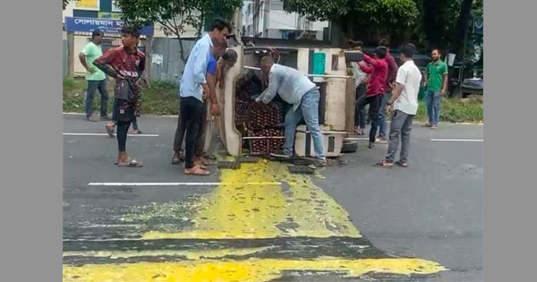 চট্টগ্রামের মিরসরাইয়ে লেগুনা গাড়ি উল্টে লাখ টাকার মুরগির ডিম নষ্ট হয়ে গেছে।