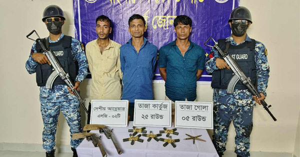 কক্সবাজারের মহেশখালীতে দেশীয় তৈরি আগ্নেয়াস্ত্র-গুলিসহ দ্বীপের শীর্ষ সন্ত্রাসী শাহজানসহ ৩ জন সন্ত্রাসীকে আটক করেছে কোস্ট গার্ড।
