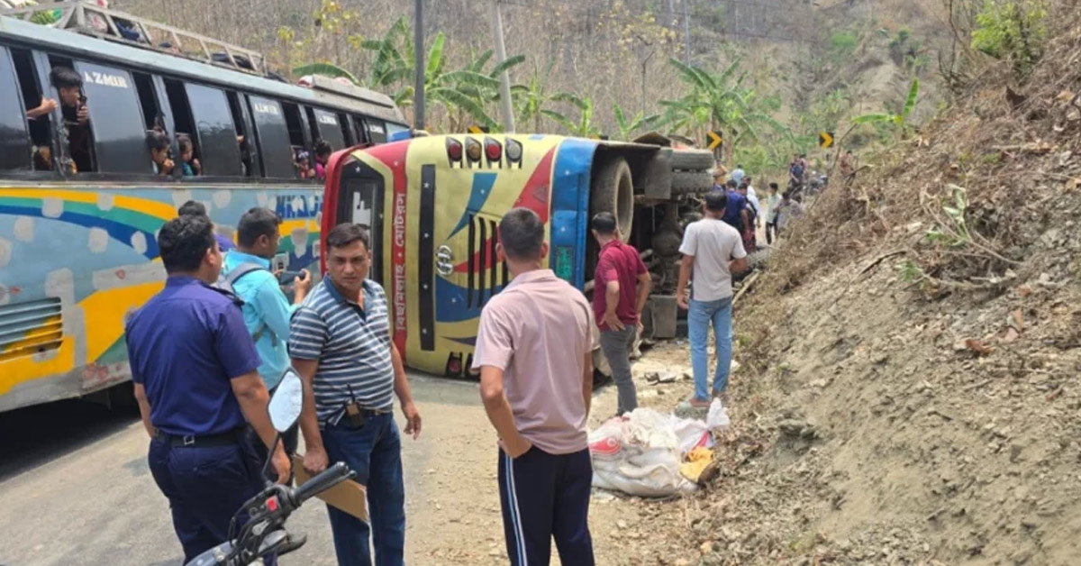পাহাড়ে ধাক্কা খেয়ে উল্টে গেল যাত্রীবাহী বাস, রাঙামাটিতে আহত ১৯